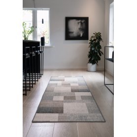 Keinotekoinen silkkimatto viskoosia, jossa kaunis kuviointi miellyttävän pehmeissä harmaan ja beigen sävyissä. Kuviossa on tilkkutäkki tuntuinen epäsäännöllisillä neliöillä, jotka on täynnä erilaisia kuviokuvia, kuten medaljonki- tai kukkakuvioita. Kuviossa on paljon luonnetta, mutta se tuntuu silti hienostuneelta hienosäätettyjen värien ansiosta. Matto leikataan 80 cm leveästä rullasta.Paksuus vain 5 mm, pehmeä pinta. Kevyt.